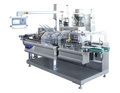 DDU-190型奶粉裝盒機(jī)適合900克500克袋裝奶粉自動裝盒,配諾信膠機(jī)自動封盒。